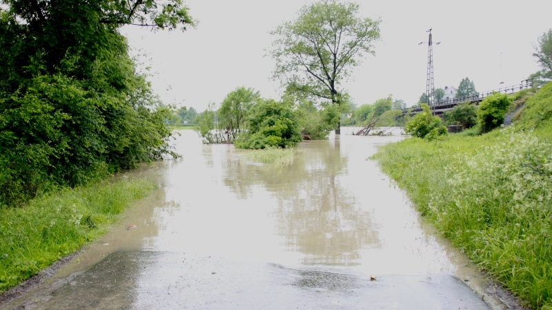 Przed momentem próbowaliśmy się dostać do stacji uzdatniania wody. Niestety, okazało się to już niemożliwe. Woda zalała m.in. ul. Chodenicką, przejazd pod wiaduktem kolejowym łączącym ul. Karosek z ul. Łany, woda wystąpiła też na ul. Łany.