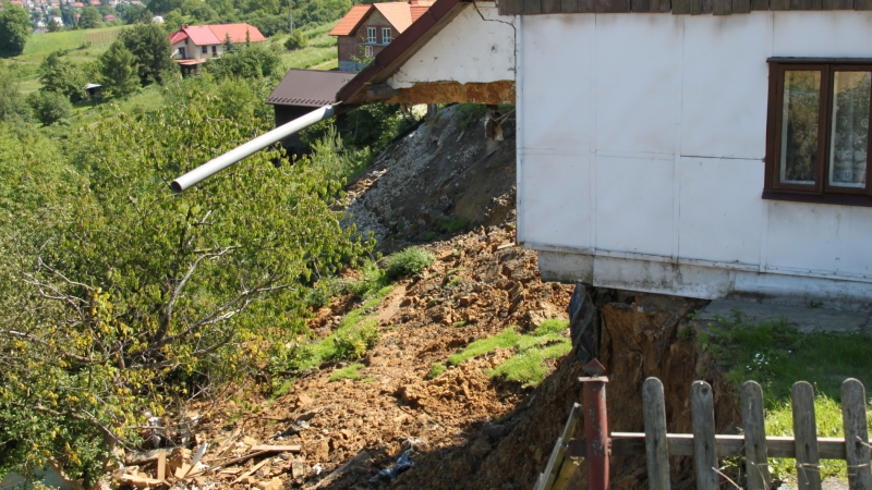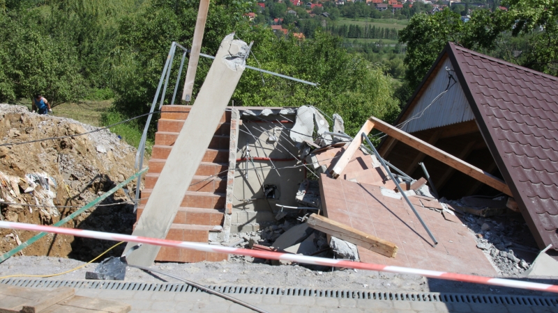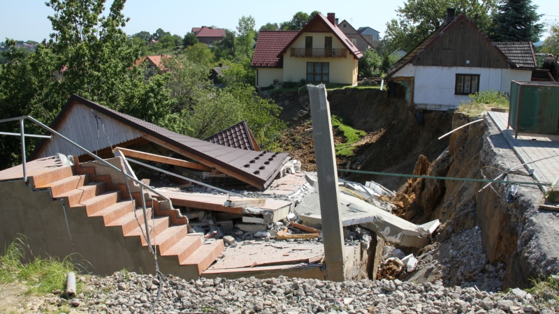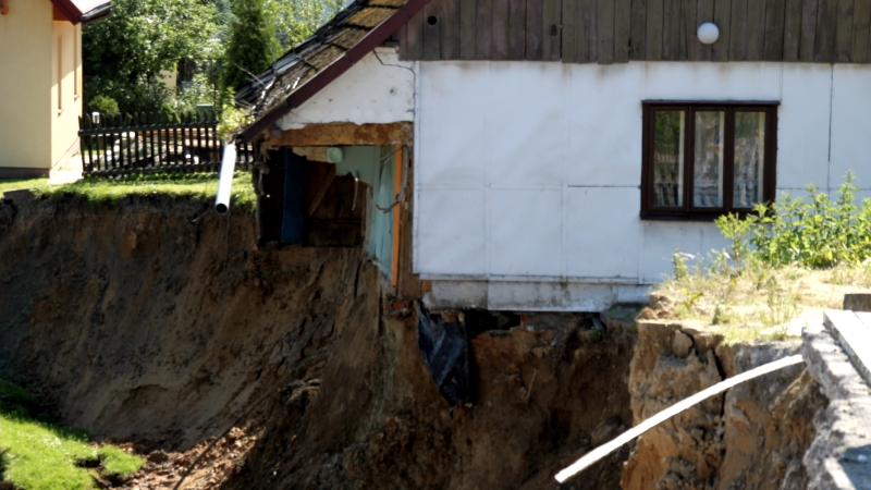 W sobotnie popołudnie skarpa ziemi porwała nowy budynek mieszkalno-usługowy. Na szczęście jego właściciel już dzień wcześniej zauważył, że ściany zaczynają pękać i wyniósł z pomocą sąsiadów wszystek sprzęt.