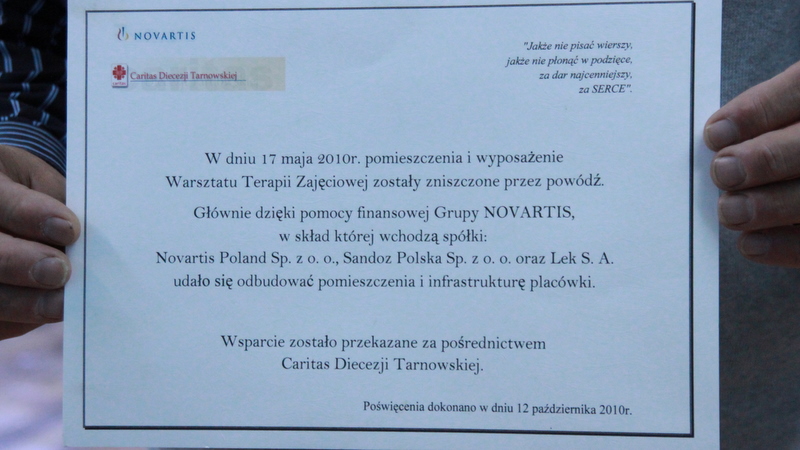 12 października odbędzie się poświęcenie odnowionych warsztatów. Przybędą na nie przedstawiciele firmy Novartis oraz szef tarnowskiego oddziału Caritas.