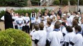 Na starcie – pod kościołem św. Pawła Apostoła stanęli uczniowie szkół podstawowych, gimnazjalnych i średnich z terenu gminy. Wcześniej spotkali się w świątyni na krótkiej modlitwie pod rzeźbą Jana Pawła II.