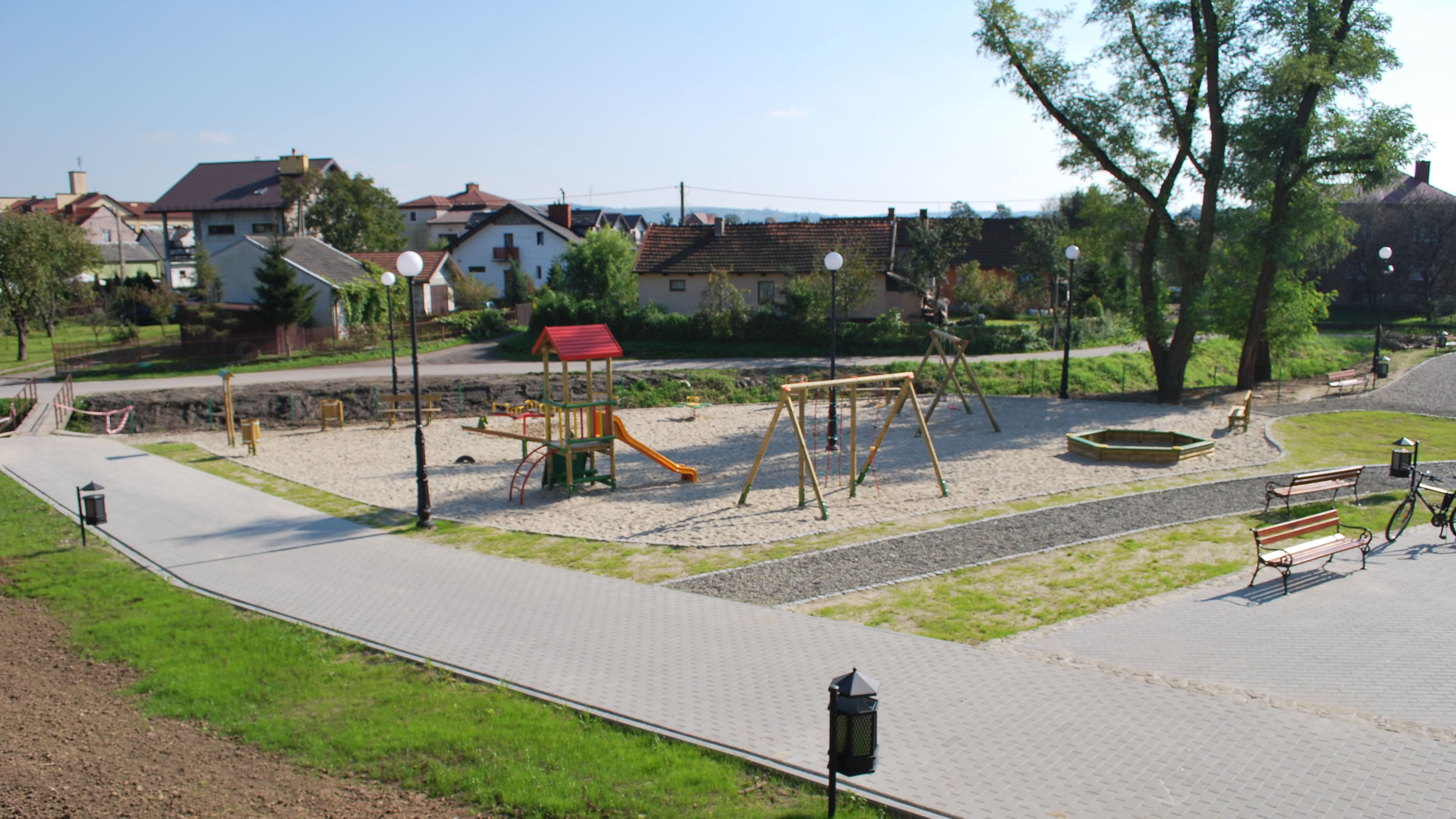 Priorytetem projektu było wybudowanie i zagospodarowanie parku wiejskiego stanowiącego wizytówkę miejscowości Rzezawa. Atrakcyjne wyposażenie placu zabaw przyciąga bardzo dużą liczbę dzieci. Elementy zabawowo – gimnastyczne, huśtawki, karuzele krzyżakowe umożliwiają przyjemne spędzanie czasu.