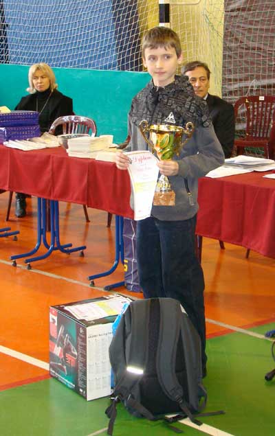 – Michał początek zawodów miał niezbyt fortunny , po pierwszej wygranej z przeciwnikiem z Niemiec drugą partię dosyć niefortunnie przegrywał (więcej w tej partii przyczyniła się do przegranej trema niż umiejętności Michała) jednak już od 3 rundy zaczął wszystko wygrywać i tak było aż do ostatniej rundy w której zremisował w pozycji dużo lepszej dla siebie, jednak remis dał mu wygraną w całym turnieju – mówi Józef Wcisło, tata Damiana.
