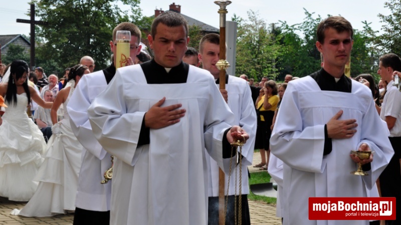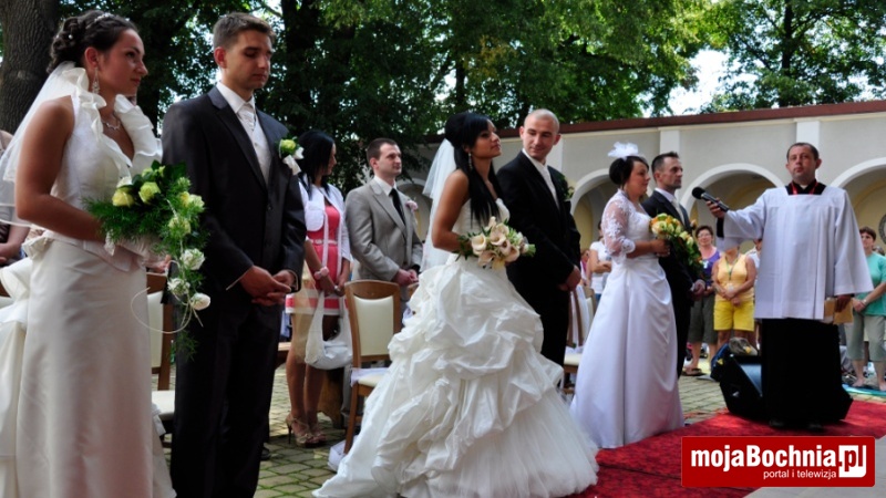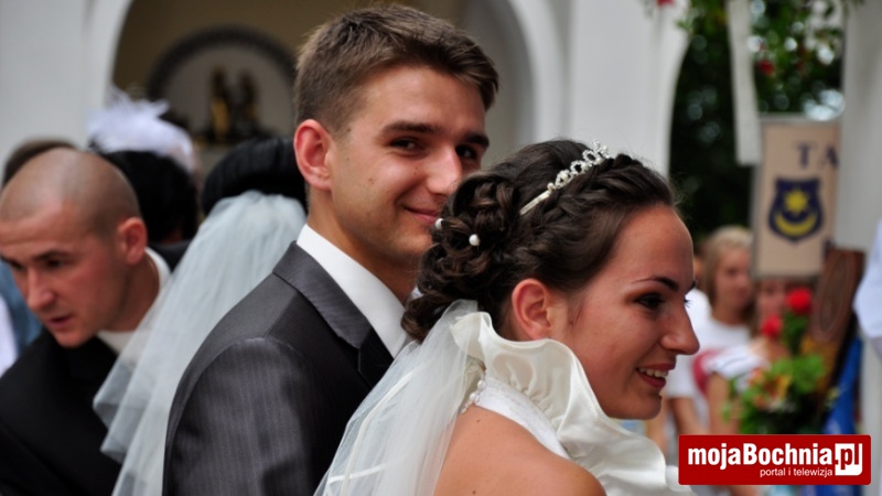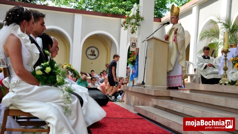 Msza św. odprawiana dla pielgrzymów w Okulicach słynie z tego, że podczas niej co roku w związek małżeński wstępują związani z duchem pielgrzymki narzeczeni. Dziś przed ołtarzem przysięgały sobie miłość trzy pary. Jedna z nich to młodzi ludzie z Bochni.