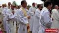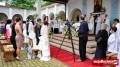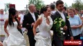 Uroczystej mszy św. ślubnej przy Sanktuarium Matki Bożej w Okulicach przewodniczył ks. bp Wiesław Lechowicz. Pary składały sobie przysięgi przed ołtarzem polowym. Towarzyszyli im świadkowie, rodzina, przyjaciele i bracia i siostry z pielgrzymkowego szlaku.