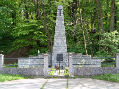 Schodząc alejką na północ w stronę ul. Parkowej, koniecznie skręćmy w lewo, aby zadumać się pod pomnikiem ofiar zbrodni hitlerowskiej, która wstrząsnęła Bochnią 18 XII 1939 r. W odwecie za napad członków organizacji „Orzeł Biały” na posterunek policji niemieckiej, hitlerowcy rozstrzelali w tym miejscu 52 osoby z Bochni i okolic. Te tragiczne wydarzenie upamiętnia wysoki obelisk z kostki granitowej, wzniesiony w 1949 r. przez społeczeństwo Bochni. Z placu przed pomnikiem możemy podziwiać widok na zachodnią część miasta z dominującym na Wzgórzu Kolanowskim kościołem św. Pawła.