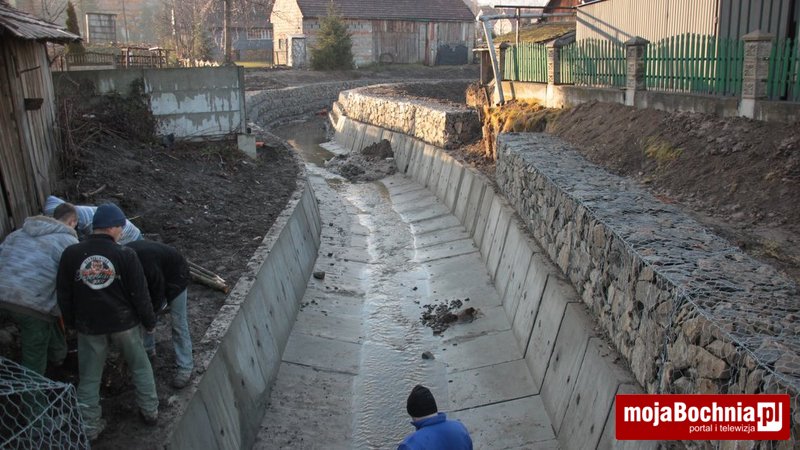 Obecnie dobiega końca poszerzanie koryta potoku na odcinku 406 mb. Dzięki temu woda powinna szybciej odpływać, nie powodując zniszczeń. Będzie dużo bezpieczniej. W tamtym roku powódź była tu 6 razy, ulicą płynęła rwąca rzeka. Teraz gdy przychodzi większa woda, wszyscy siedzimy w oknach – mówią mieszkańcy.