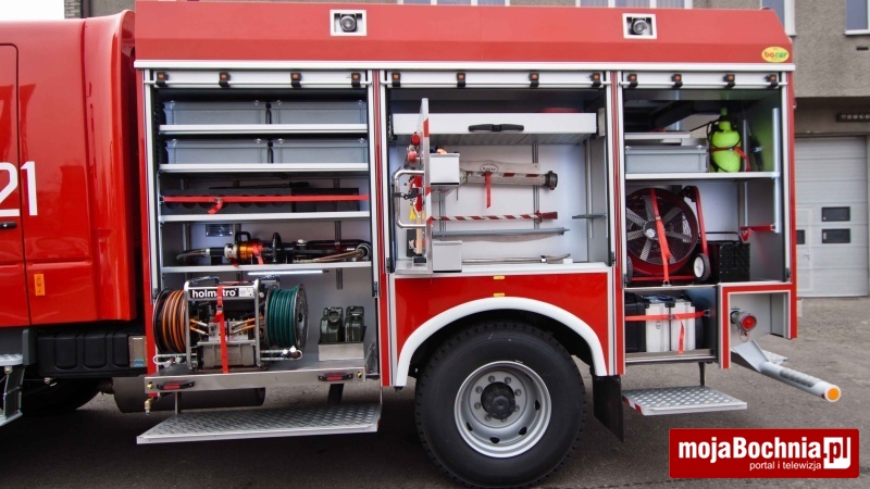 Oprócz podstawowego sprzętu ratowniczego, wyposażony jest m.in. w skokochron, agregat prądotwórczy i precyzyjny system pozycjonowania pojazdu. Dodatkowo, Starosta Bocheński – Jacek Pająk przekazał zestaw specjalistycznych narzędzi do cięcia stali i betonu oraz ubrania ochronne do działań ratowniczych w wodzie.