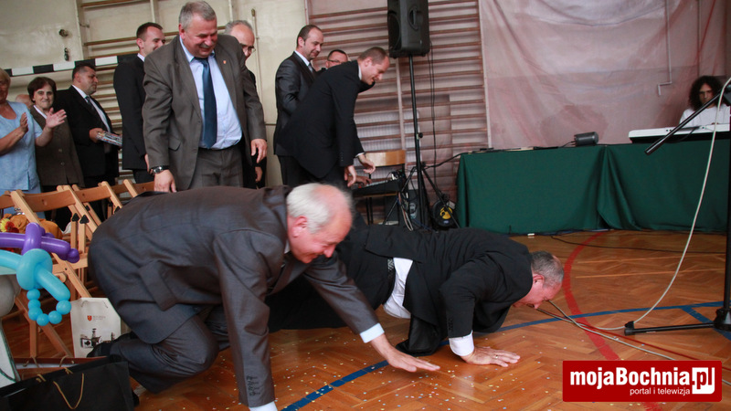 Jubileusz na piątkę – tak można by streścić to, co działo się we wtorek w Szkole Podstawowej nr 5 w Bochni. Uczniowie bocheńskiej „tysiąclatki” za pomocą subtelnej perswazji skłonili VIP-y do robienia przysiadów i pompek :).