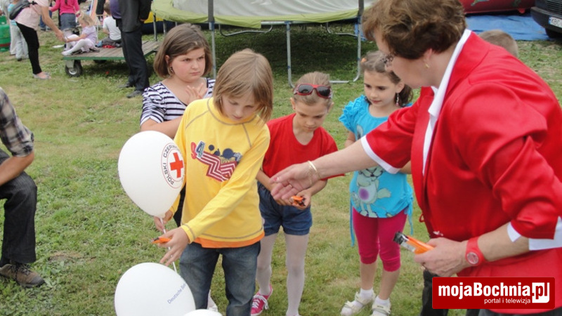 Prezes Klubu HDK PCK w Drwini pan Stefan Styczeń zapoznał licznie zebranych na szkolnym placu w Dziewinie uczestników Festynu Rodzinnego z przygotowanymi propozycjami wspólnej zabawy. Najpierw przeprowadzono Błyskawiczny Konkurs Wiedzy o Krwiodawstwie dla dorosłych w którym wzięło udział 57 uczestników. W drodze losowania wyłoniono 4 zwycięzców. Kolejną atrakcją był „Bieg po batonik” dla dzieci w wieku od 3 do 6 lat. Dzieci oprócz słodkości odbierały również baloniki z logo PCK. Ostatnią z atrakcji jaką przygotowano dla starszych dzieci był konkurs rysunku na asfalcie pod hasłem „Krew leczy i ratuje życie chorym dzieciom”, który niestety został przerwany przez deszcz. Całość została uwieńczona wypuszczeniem w niebo czerwonych baloników na zakończenie pikniku.