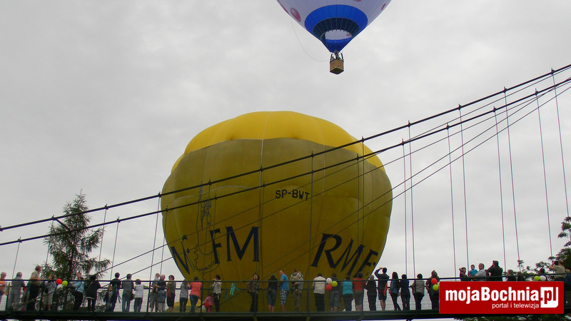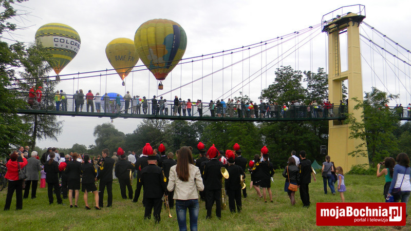 Burmistrz i wójt w towarzystwie uroczej pary krakowiaków: Kingi Gawlik i Norberta Kmiecika – uczniów szkoły podstawowej w Damienicach przecięli wstęgę. W górę poleciały biało-czerwone baloniki, zagrała bocheńska Orkiestra Górnicza, a później tuż obok mostu… wystartowały prawdziwe, ogromne, kolorowe balony. Były to statki powietrzne uczestniczące w XIX Krakowskich Zawodach Balonowych. Goście i mieszkańcy obserwowali ten spektakl z damienickich łąk, a także z nowo budowanego mostu.