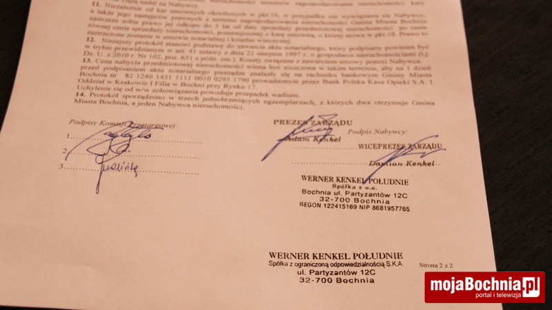 Burmistrz Stefan Kolawiński uważa, że sprzedaż pierwszej działki w Bocheńskiej Strefie Aktywności Gospodarczej to historyczne dla miasta wydarzenie. Dzisiejsza sprzedaż tej działki oznacza rozpoczęcie zupełnie nowego etapu i budowanie podstaw ekonomicznych miasta w dłuższej perspektywie. Porównałbym to z momentem lokalizowania tutaj huty, która w tej chwili jest Stalproduktem S.A. Wiemy, co ta firma oznacza dla Bochni i wierzę, że ci przedsiębiorcy, którzy rozpoczną działalność w Strefie Aktywności Gospodarczej, będą stanowili o tym, jak to miasto będzie mogło się rozwijać w przyszłości – mówi burmistrz.