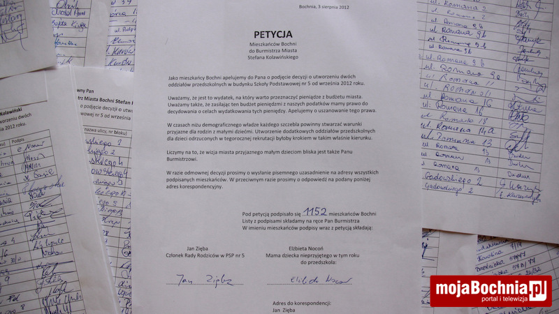 1152 podpisy zebrali rodzice, których dzieci nie dostały się do przedszkola. Takich maluchów w skali Bochni jest około setki. W piątek delegacja przyszła do burmistrza z petycją.