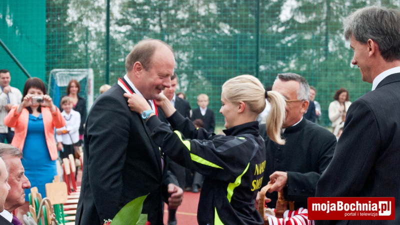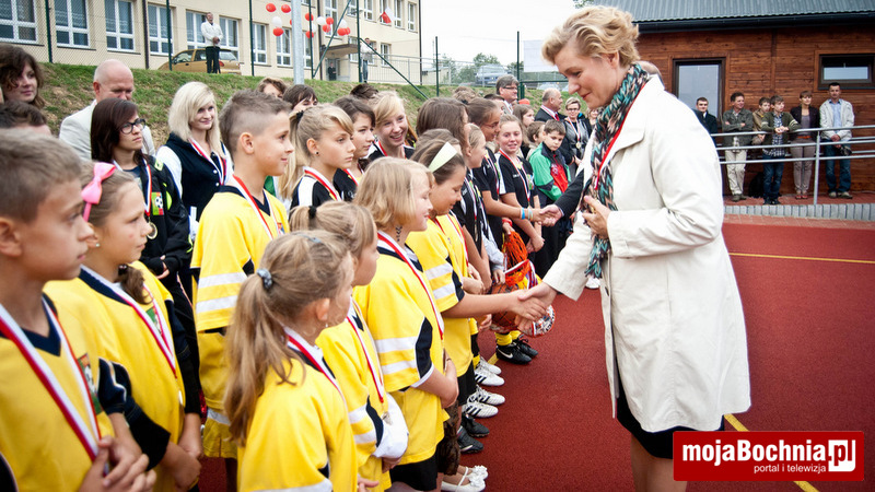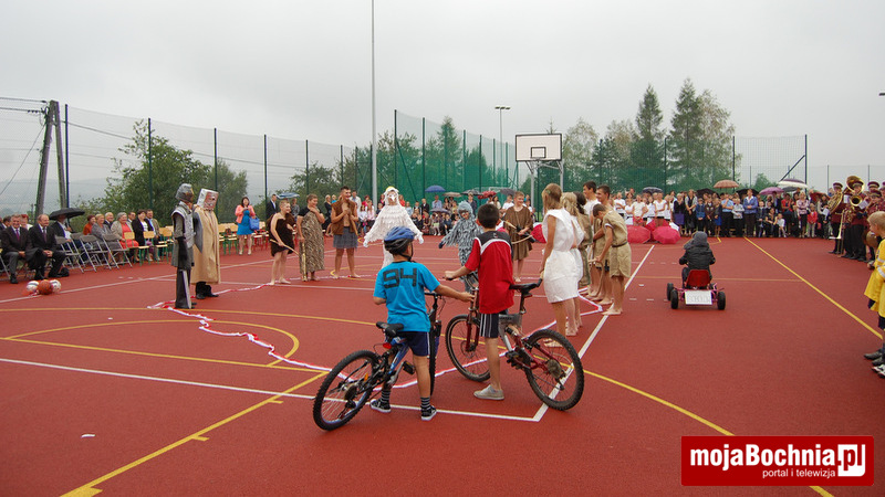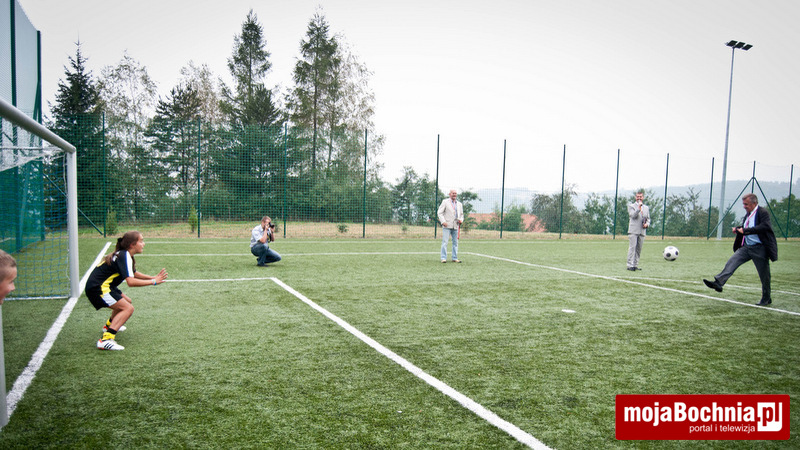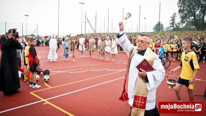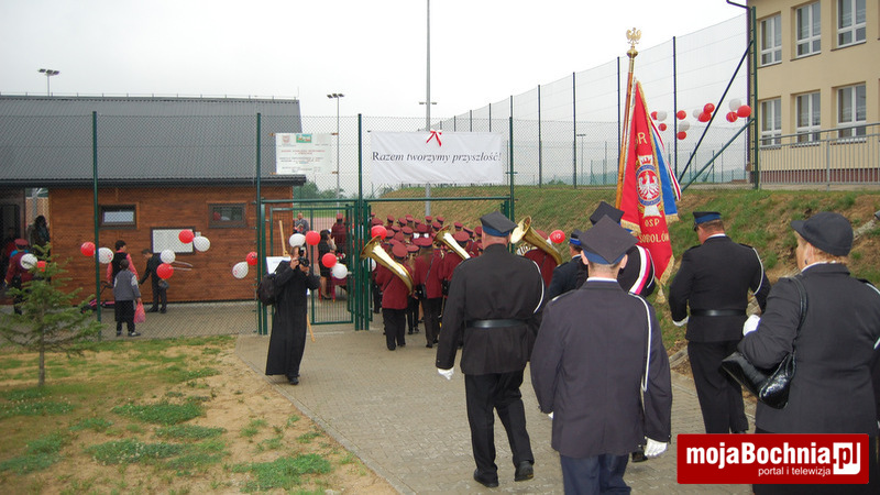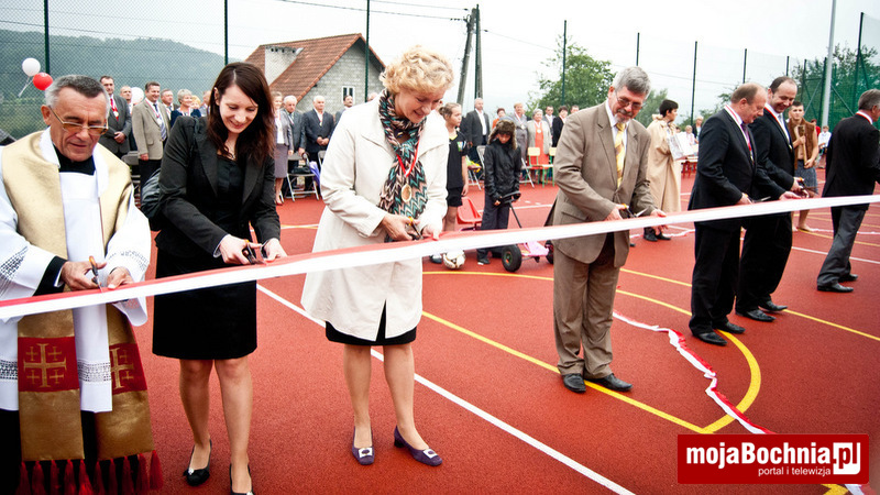 W dalszej kolejności ks. Jachym dokonał poświęcenia nowo otwartego kompleksu boisk, po czym nastąpiło uroczyste przecięcie wstęgi przez Elżbietę Achinger – Posłankę na Sejm RP, Stanisława Sorysa – członka zarządu Województwa Małopolskiego, Jacka Pająka – Starostę Bocheńskiego, Jana Kuliga – Wójta Gminy Łapanów, Stanisława Sobczaka – dyrektora Zespołu Szkół w Sobolowie, ks. Stanisława Jachyma – proboszcza parafii pw. Wszystkich Świętych w Sobolowie, Monikę Smolską – Przewodniczącą Rady Rodziców oraz Katarzynę Jaworską – uczennicę miejscowej Szkoły Podstawowej.