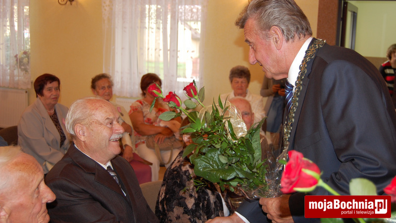 Dostojnych Jubilatów, ich rodziny oraz przedstawicieli władz gminnych powitał Kierownik USC. W swoim wystąpieniu Wójt Gminy powiedział: Minęło 50, a nawet 60 od chwili, kiedy połączyliście swój los, kiedy z miłością i nadzieją powiedzieliście sobie „TAK” i wymieniliście obrączki. Przyrzeczenia te składaliście z ufnością, że będziecie dzielić dobre i złe chwile, wspomagać się wzajemnie i cieszyć się wspólną radością. Mimo różnych przeciwności losu przyrzeczenia danemu sobie dotrzymaliście. (…) Życzę Wam drodzy Jubilaci długich i pogodnych lat, aby jak dotąd towarzyszyła Wam prawdziwa miłość, przyjaźń i szacunek. Życzę doczekania w zdrowiu i pogodzie ducha „Brylantowych Godów”, na które już dzisiaj serdecznie Was zapraszam.
