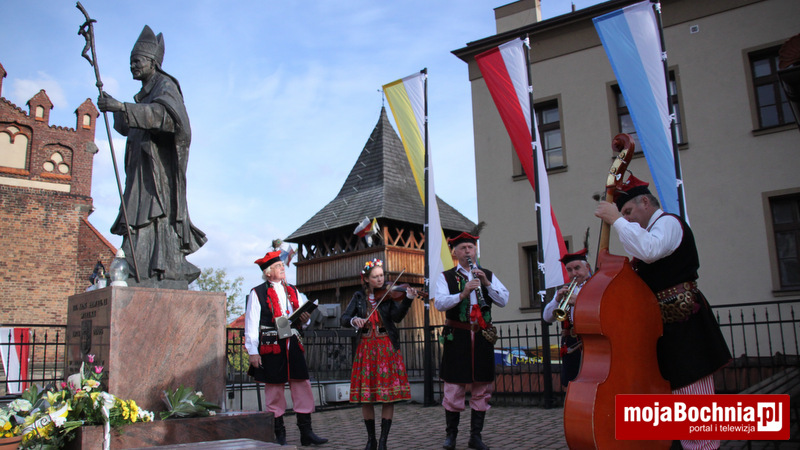 Zwieńczeniem sesji było złożenie kwiatów pod pomnikiem Papieża Polaka przy dźwiękach w wykonaniu Kapeli Bochnianie.