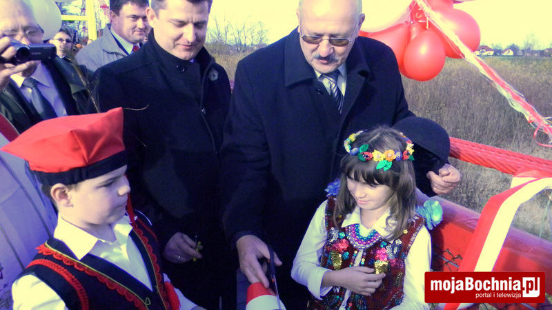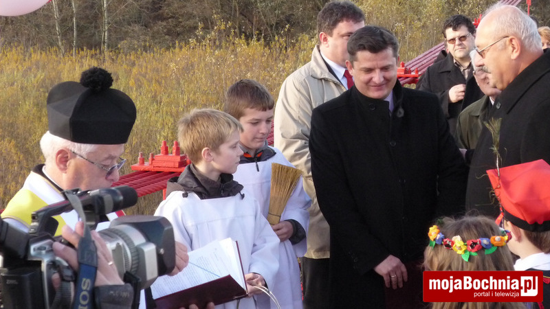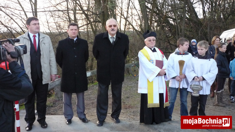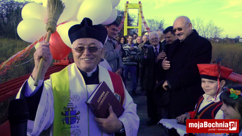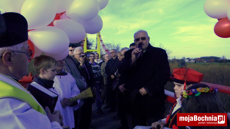 Korowód zaproszonych gości, na czele którego szła Młodzieżowa Orkiestra Dęta w Baczkowie przeszedł spod kościoła w Mikluszowicach poprzez Wzgórze św. Jana aż do brzegu Raby. Tu orkiestra zagrała hymn państwowy. Potem ks. kanonik Józef Piech dokonał poświęcenia obiektu, a bocheński wójt Jerzy Lysy, w towarzystwie Jana Pająka wójta gminy Drwinia przecięli symboliczną wstęgę – w górę poleciały dwie wiązki biało-czerwonych balonów.