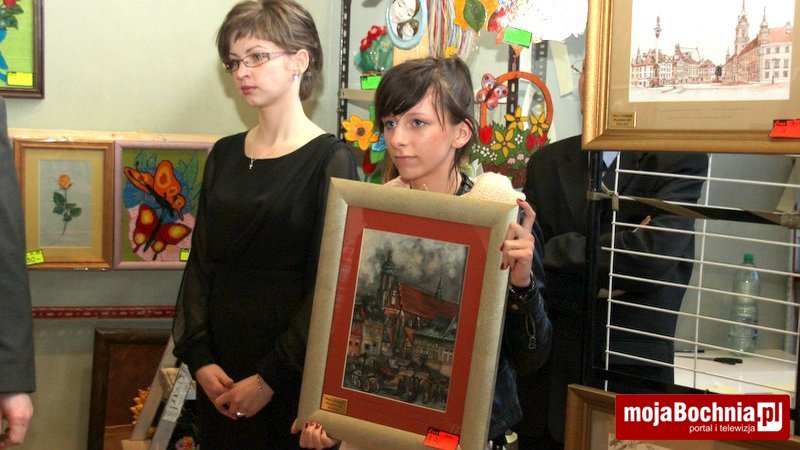 Władysław Hojda wylicytował obraz „Rynek w Bochni” za kwotę 500 zł. Adam Włodek za cenę 500 zł stał się nabywcą portretu Papieża Franciszka I z dedykacja od Ks. Prałata Jana Nowakowskiego, proboszcza parafii św. Pawła w Bochni. Przedstawiciele Gminy Bochnia wylicytowali prace „ Górska rzeka” na kwotę 450 zł. Ks. Prałat Jan Nowakowski stał się właścicielem obrazu z dedykacja od Eleni za kwotę 400 zł (Dawna ulica Biała). Czynię to z potrzeby serca, aby tutaj być i skromnie pomóc tym niepełnosprawnym. Dlatego wylicytowałem obraz związany z Bochnią i z podpisem Eleni – mówi ks. Jan Nowakowski.