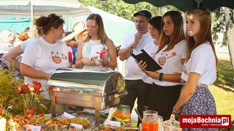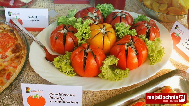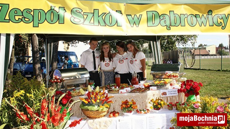 Stoisko przygotowane przez Zespół Szkół w Dąbrowicy cieszyło się dużym zainteresowaniem. Przybyli goście chętnie smakowali „pomidorowychˮ potraw wśród których znalazły się między innymi: tarta z pomidorami i serem, zupa pomidorowa, konfitura z żółtych pomidorów, pomidorowe kwiaty ze szpinakiem, pomidorowe okręciki, muszelki z chutnejem, tartaletki z pomidorkami, chłodnik pomidorowy z brzoskwinią, cebulaki z cząstką pomidora, sałatka z zielonych pomidorów z żółtą papryką, sałatka caprese, muszelki faszerowane mięsem w sosie pomidorowym, pomidory nadziewane sałatką jarzynową i Zalewajka Dąbrowicka.