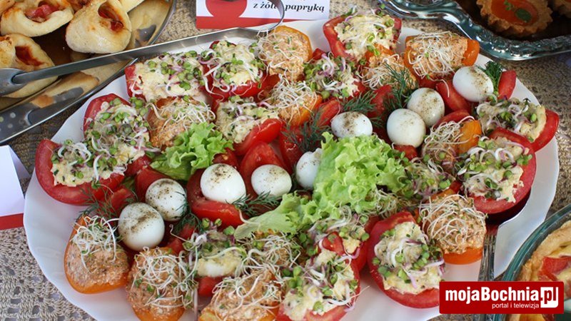 Tarta z pomidorami i serem, zupa pomidorowa, konfitura z żółtych pomidorów, pomidorowe kwiaty ze szpinakiem, pomidorowe okręciki, muszelki z chutnejem, tartaletki z pomidorkami, chłodnik pomidorowy z brzoskwinią – te i inne smakołyki przygotowali uczniowie ZS w Dąbrowicy na Biesiadę Agroturystyczną w Siedlcu.