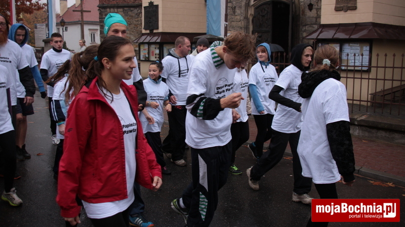 Trasa biegu została wyznaczona pomiędzy trzema bocheńskimi świątyniami. W każdej z nich Jan Paweł II jest upamiętniony figurą bądź pomnikiem. Uczestnicy Biegu Papieskiego dostali pamiątkowe koszulki, a także ciepłą herbatę.