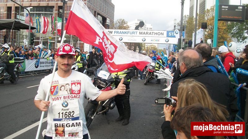 Paweł Mej pobiegł na frankfurdzkim maratonie już po raz czwarty. Tym razem osiągnął czas 6 godzin 3 minut 22 sekund. Na metę przybiegło po nim ponad 26 zawodników, w tym jego odpowiednik z Niemiec na boso.