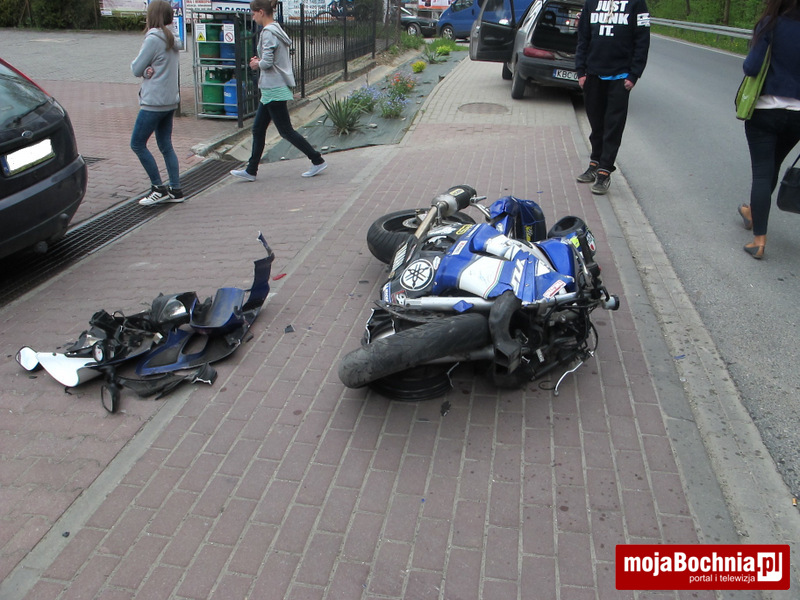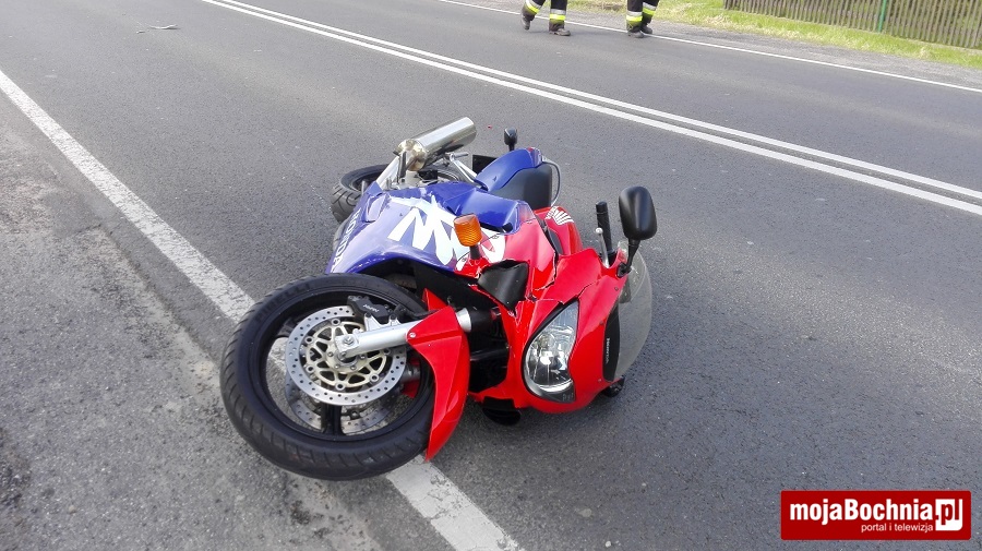 Motocyklista uderzył w skręcający w lewo samochód